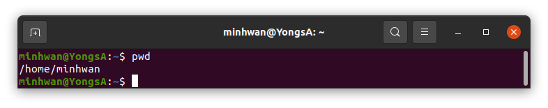 - pwd: 현재 위치를 확인하는 명령어