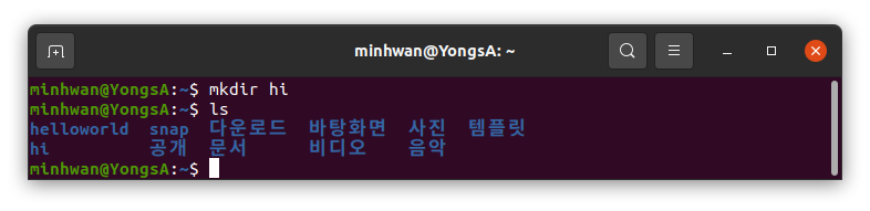 - mkdir: 새로운 폴더를 생성하는 명령어