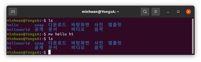 - mv: 폴더나 파일의 위치를 이동하거나, 이름을 변경하는 명령어